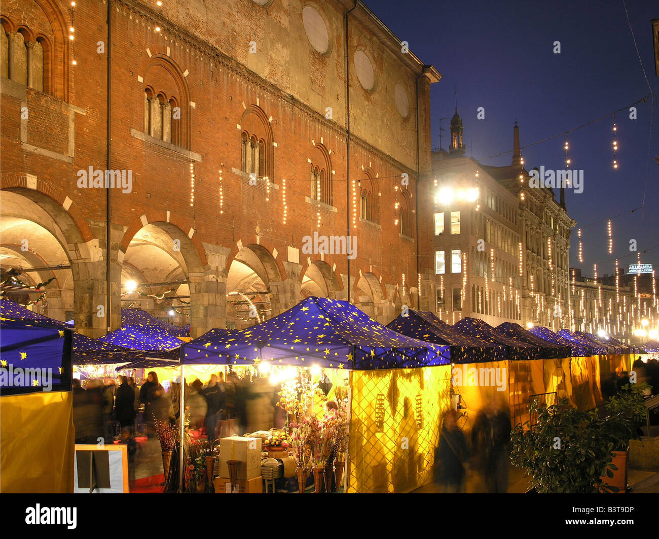 An outdoor seasonal event with over 60 market huts spread around the magnificent duomo of milan dedicated to traditional christmas products (xmas decorations, baubles for the tree, nativity cribs, befana stockings for the epiphany and so on).